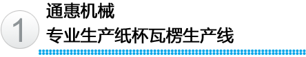 江陰市通惠機械有限公司,專業(yè)生產(chǎn)紙杯瓦楞生產(chǎn)線,研發(fā)的中空紙杯專用瓦楞杯生產(chǎn)線,S楞、菱形、圓形、點狀形瓦楞紙杯專用生產(chǎn)線。同時,還生產(chǎn)單面瓦楞紙板生產(chǎn)線。